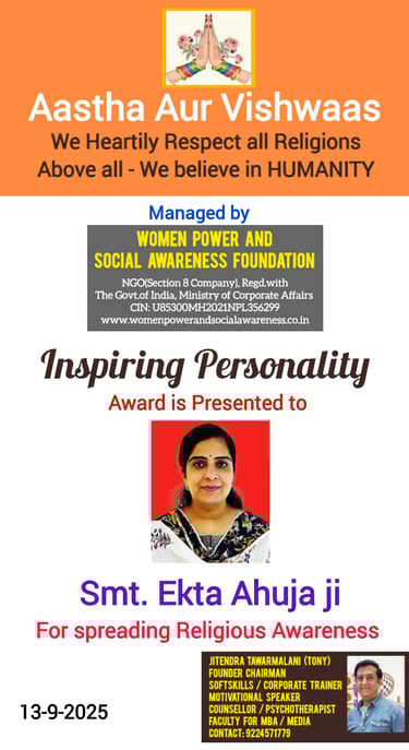 AASTHA AUR VISHWAAS - INTERNATIONAL RELIGIOUS PLATFORM under our
